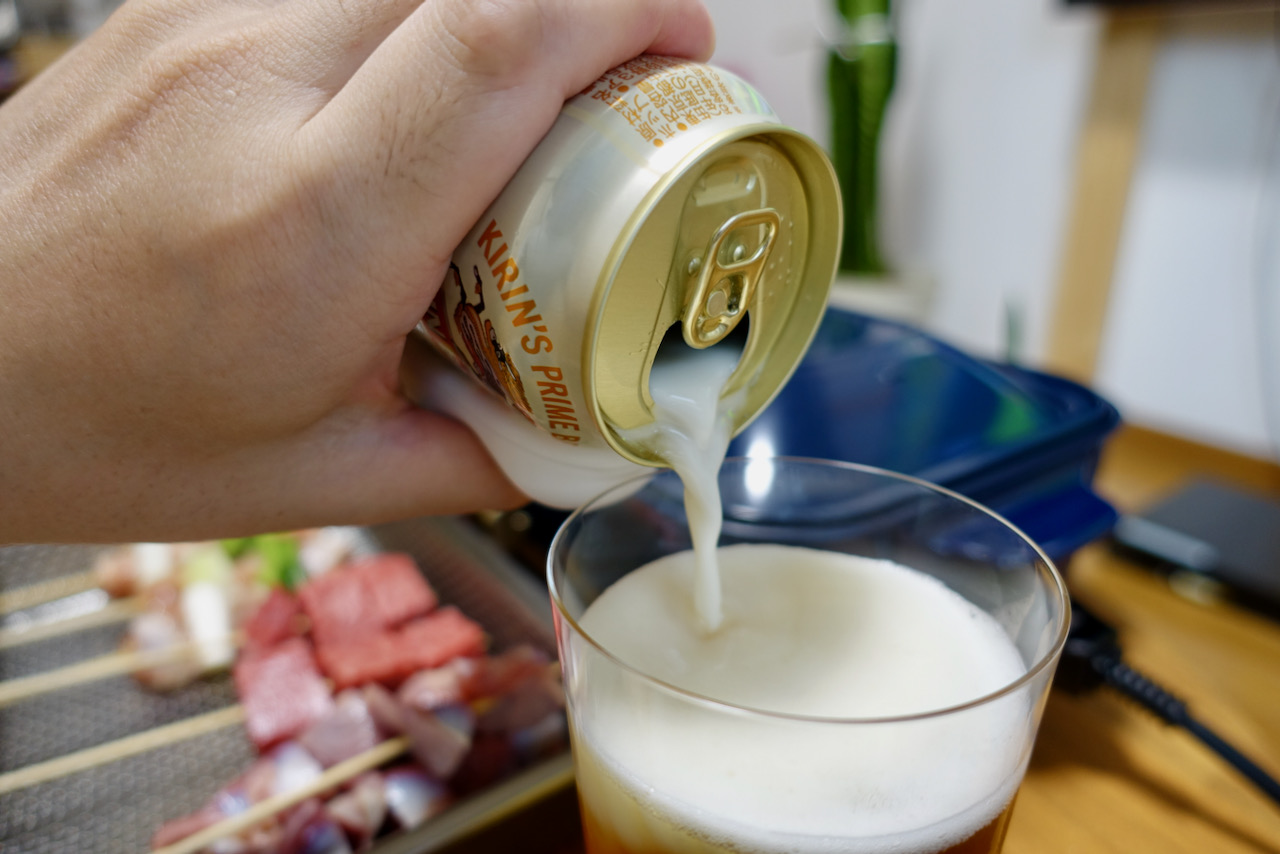 缶ビールは缶のまま、ぐいっといくのが美味しい。缶のままって爽快感もあって好きなんですよね。